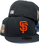 Presenting Black San Francisco Giants Rhinestones 2007 All Star Game custom New Era fitted hat from Sports World. 59Fifty high crown with icy blue under visor. Front logo in orange....