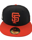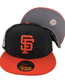 Custom new era fitted. 100% wool.all black cap with orange visor. 1984 all star game side patch. gray under visor