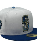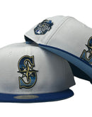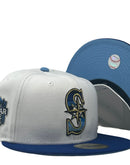 Introducing a unique custom Seattle Mariners gray brim New Era fitted hat from Sports World. The 59Fifty high crown fitted hat is designed with a sleek all white color cap with royal blue visor that provides a bold contrast to the classic design.