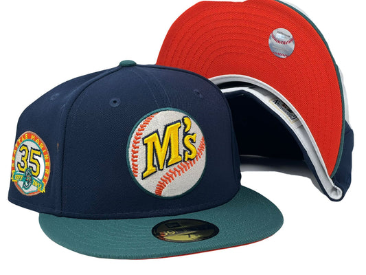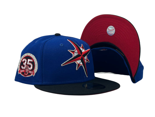 Seattle Mariners 35th Anniversary 59Fifty Royal Black Red Brim Fitted Hats