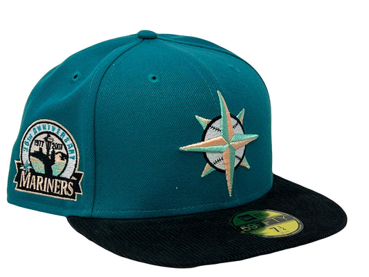 Seattle Mariners 30th Anniversary Aqua Blue Black Corduroy Visor Fitted Hats