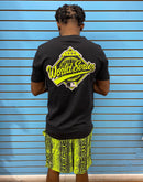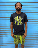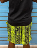 New era exclusive shorts, featured in a snakeskin design in tonal electric green and black. features pocket on both sides, genuine merchandise, made in china.