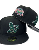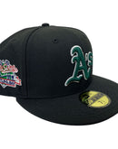 Custom new era fitted. all black Oakland athlectics 1989 world series side patch