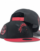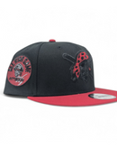 Black crown with a bold red visor for a classic yet standout look.