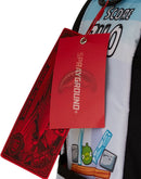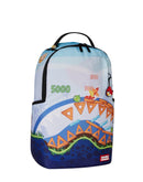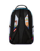 Dimensions: 18" x 6" x 11.5" • Front zipper pocket • Side pockets • Zippered Stash pocket • Separate velour sunglass compartment • Ergonomic mesh back padding • Adjustable Straps for custom sizing • Gold zippers with metal hardware • Metal "Sprayground Authentic" badge • Slide through back sleeve connects to carry-on luggage to free your hands
