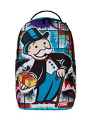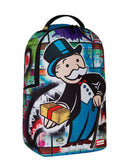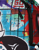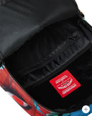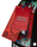 Dimensions: 18" x 6" x 11.5" • Front zipper pocket • Side pockets • Zippered Stash pocket • Separate velour sunglass compartment • Ergonomic mesh back padding • Adjustable Straps for custom sizing • Gold zippers with metal hardware • Metal "Sprayground Authentic" badge • Slide through back sleeve connects to carry-on luggage to free your hands