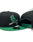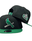 Dedicated to commemorating the illustrious 2011 world series championship journey of the St. Louis Cardinals, this snapback encapsulates the essence of the team's legacy. The all-black color cap with Kelly green visor. Front logo in Kelly green with black and white outline symbolizing the Irish spirit and unwavering determination. Baseball bat in metallic silver with black outline.Ā Adorning the left mid-panel is the iconic 2011 world series championshipĀ side patch, a testament to four decades of triumphs, challenges, and unforgettable moments in Cardinal's history.