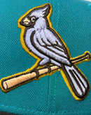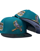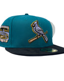 Introducing a unique custom St. Louis Cardinals Busch Stadium lavender brim new era fitted hat from Sports World. The 59Fifty high crown fitted hat is designed with a sleek all-aqua green color crown with a stylish black cord visor that provides a bold contrast to the classic design.