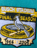 - Busch Stadium Final Season side patch and peach baseball bat design with a gold outline.
