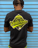 New era exclusive design, team logo on front and World Series logo on back, featuring a classic new era flag on sleeve. Genuine merchandise, 100% cotton, made in china. rep your team in this tonal color way.