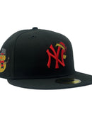 Introducing a unique custom New York Yankees Christmas collection New Era fitted hat from Sports World 165. The 59Fifty high crown fitted hat is designed with a sleek all black color cap.