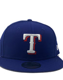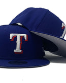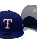 Represent your team with Royal Blue Texas Rangers Team Official Color new era 9fifty snapback hat. It features all Royal Blue cap. Team original logo in front. Gray under visor. Black sweat band.
