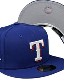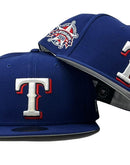 Introducing a unique custom Texas Rangers 1995 all-star game gray brim New Era fitted hat from Sports World. The 59Fifty high crown fitted hat is designed with a sleek all royal blue color cap that provides a bold contrast to the classic design.