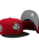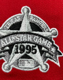 Introducing a unique custom Texas Rangers 1995 All-star game New Era fitted hat from Sports World. The 59Fifty high crown fitted hat is designed with a sleek all red color cap with black visor that provides a bold contrast to the classic design.