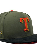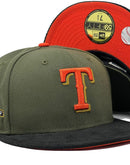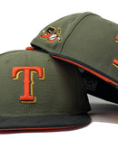 Presenting an exclusive custom " Corduroy brim" pack only from Sports world. 59Fifty high crown cap. it features an olive-green color crown with black corduroy visor. front logo in orange with Chevrolet gold outline. 50th anniversary side patch left mid panel. tonal new era flag on right mid panel. flat MLB batter man in the back. orange under visor. black sweat band. 100 percent polyester. imported from China.