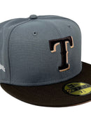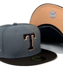 Presenting an exclusive custom " Neutral & Versatile" pack only from Sports world. 59Fifty high crown cap. it features an all storm gray color crown with dark brown visor. front logo in walnut and peach outline. 50th anniversary side patch left mid panel. tonal new era flag on right mid panel. flat MLB batter man in the back. peach under visor. white sweat band. 100 percent polyester. imported from Bangladesh.