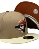 Celebrate the Toronto Blue Jays in style with this unique custom New Era Fitted Hat, only from Sports World. The 59Fifty high crown cap features a sleek all-camel/khaki color crown with a trendy off-white visor, creating a timeless and stylish design that's sure to turn heads.