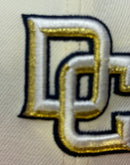 Front Logo: Metallic gold and white with navy blue outline embroidery