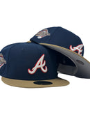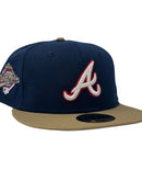 Celebrate the Atlanta Braves iconic 1996 World Series season with this impeccably designed New Era 59Fifty fitted hat. Designed for true fans and fashion enthusiasts alike, this cap blends a timeless sports legacy with contemporary style. The all-navy blue crown creates a sleek and classic foundation, while the striking wheat visor offers a bold, eye-catching contrast. Whether you're at the game, hitting the streets, or adding to your hat collection, this piece ensures you stand out effortlessly.