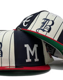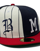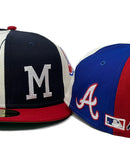 The Atlanta Braves Logo Pinwheel 59FIFTY Fitted Cap features six different embroidered team logos throughout the crown, and an MLB Batterman logo at the rear. Additional details include a green under visor.