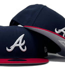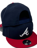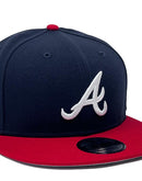 Team color new era adjustable snapback hat. it features all navy-blue color cap with red visor. front logo in white. adjustable, one size fits most.