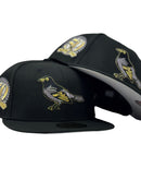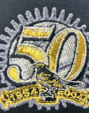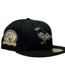 Celebrate the rich history of the Baltimore Orioles with this stunning 50th Anniversary Black Fitted Hat. This cap blends sleek design with celebratory details and is designed for fans who appreciate timeless style and high-quality craftsmanship. The bold, all-black base serves as the perfect canvas for the front logo, which is adorned with metallic pewter and black accents outlined in striking metallic gold. Paying homage to the team's milestone, the 50th-anniversary side patch shines with metallic silver and gold, adding a touch of elegance to the cap. Whether you're at the ballpark or showcasing your Orioles pride daily, this fitted hat is a sophisticated tribute to a legendary franchise.