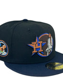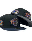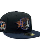 Presenting a unique custom Houston Astros 50th anniversary gray brim new era fitted hat from Sports World. The 59Fifty high crown fitted hat is designed with a sleek all-black color crown and a stylish navy blue visor that provides a bold contrast to the classic design.