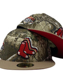 Introducing a unique custom Boston red sox 90th anniversary "Real Tree pack" red brim New Era fitted hat only from Sports World. The 59Fifty high crown fitted hat is designed with a sleek all real tree color cap with red visor that provides a bold contrast to the classic design.