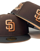 Deep Brown San Diego Padres Stadium Peach custom New Era fitted hat exclusive from Sports World. 59Fifty high crown cap. Front logo, "S" in peach and "D" in metallic copper....