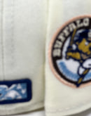 Introducing a unique custom Buffalo Bisons icy brim New Era fitted hat from Sports World. The 59Fifty high crown fitted hat is designed with a sleek all Off-white color color cap with camel visor that provides a bold contrast to the classic design.
