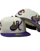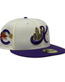 - All-off-white crown paired with a rich purple visor for a striking contrast.