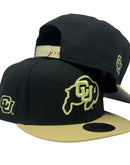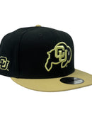 Embrace the legacy and power of college football with the Colorado Buffaloes 9FIFTY snapback Hat, crafted to spotlight your team pride timelessly. The sleek black color crown with Vegas gold visor that elevates your gameday or streetwear look. With the iconic Buffaloes emblem stitched prominently at the front.