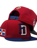 The Dominican Republic 2026 World Baseball Classic 9FIFTY A Frame snapback Cap features an embroidered Dominican Republic logo at the front panels with the country's flag at the right-wear side. Additional details include the World Baseball Classic logo at the rear and a gray under visor. Imported from Bangladesh.