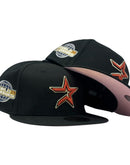 Introducing a remarkable addition to your sports memorabilia collection - the Houston Astros 2005 World Series Black pink Brim New Era Fitted Hat. This custom-designed cap boasts an elegant black exterior, showcasing the iconic team's old school logo on the front, representing a nostalgic nod to the team's glorious past. Commemorating their victorious 2005 World Series campaign, the hat features a classic side patch on the left mid-panel, transporting you back to that unforgettable championship moment. Crafted with precision, this premium-quality hat bears the trusted New Era brand, with a tonal flag proudly displayed on the tight mid-panel.