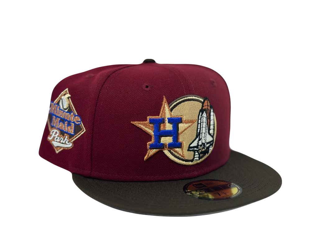 Introducing a unique custom Houston Astros Minute maid park stadium gray brim New Era fitted hat from Sports World. The 59Fifty high crown fitted hat is designed with a sleek all h red color cap with a brown visor that provides a bold contrast to the classic design.