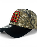 The 9Forty A-Frame hats from New Era are a modern interpretation of the classic baseball cap. These hats are characterized by their distinctive A-frame design, which features a structured front and a curved peak. 100% percent polyester and imported from China. It features all real tree color crown with black visor. red bar tack. Gray under visor. Black sweat band.