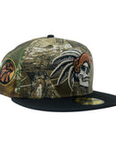 Step into a bold fusion of culture, history, and modern streetwear with the New Era Aztec Skull Warrior Real Tree 59Fifty Fitted Hat. This striking cap celebrates the fierce legacy of the Aztec warriors through a captivating skull design, meticulously embroidered to command attention. Its all-real tree color crown perfectly contrasts with a sleek black visor, delivering a versatile aesthetic that pairs seamlessly with both casual and sportswear looks.