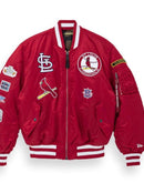 Joining forces with MLB©, the MA-1 Bomber Jacket features a variety of traditional team patches and a camouflage interior hidden in plain sight until reversed.