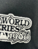 This 59Fifty high crown cap features a unique and stylish design, with an all-black color cap. The front logo is in white.  The 1986 world series side patch on the left mid-panel adds a special touch to the hat, while the tonal New Era flag on the right mid-panel completes the design.