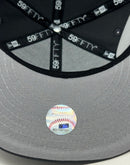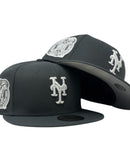 This 59Fifty high crown cap features a unique and stylish design, with an all-dark gray color cap. The front logo is in white making it stand out from other Mets hats. The subway series side patch on the left mid-panel adds a special touch to the hat, while the tonal New Era flag on the right mid-panel completes the design.