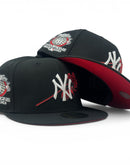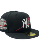 Introducing a unique custom New York Yankees 2000 world series New Era fitted hat from Sports World 165. The 59Fifty high crown fitted hat is designed with a sleek all black color cap.