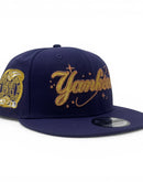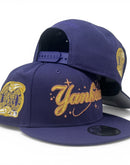 Celebrate your love for baseball and iconic city culture with the New York Yankees Subway Series purple New Era Snapback Hat. The rich purple cap, accented by a striking metallic gold front logo with metallic copper outline, makes it a standout accessory for any fan or fashion enthusiast. The Subway Series side patch adds a nostalgic touch, reflecting the rivalry and unity that define New York’s baseball heritage. Gray under visor. Black sweat band. Imported from Myanmar.