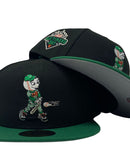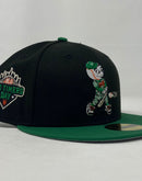 This 59Fifty high crown cap features a unique and stylish design, with a Black color cap and a contrasting Kelly-green visor. The front logo is in Kelly-green, orange and white, making it stand out from other Mets hats. 2023 old Timers day logo on the left mid-panel adds a special touch to the hat, while the tonal New Era flag on the right mid-panel completes the design.