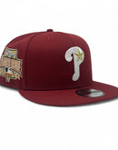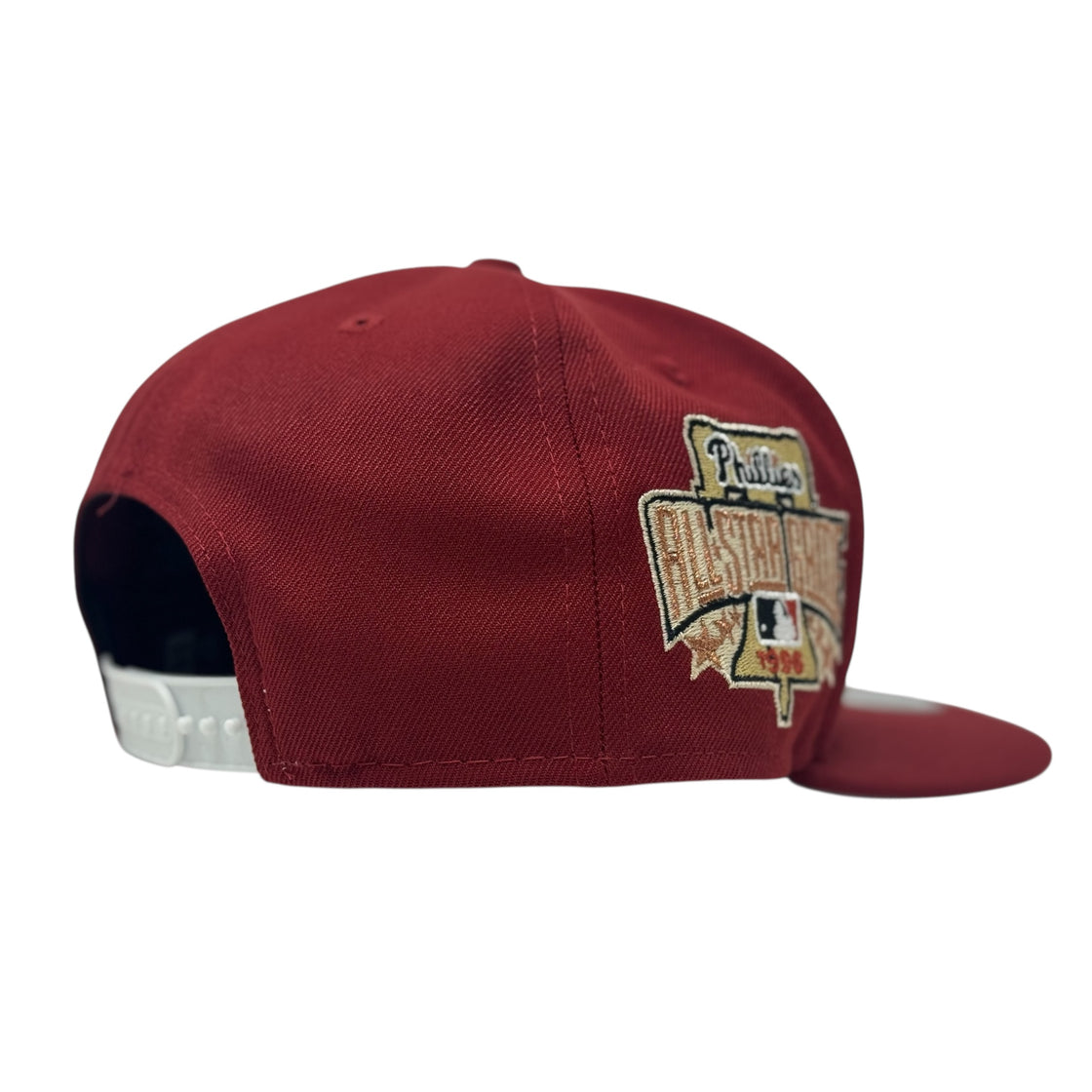 Dedicated to commemorating the illustrious 1996 All Star seasons journey of the Philadelphia Phillies, this snapback encapsulates the essence of the team's legacy. The all-brick red color cap. Front logo in white with star in metallic gold, symbolizing the Phillies bold spirit and unwavering determination. Adorning the left mid-panel is the iconic 1996 All-star game side patch, a testament to four decades of triumphs, challenges, and unforgettable moments in Phillies history.