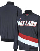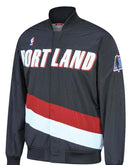 This Authentic NBA Warm-Up Jacket pays tribute to the 1996-97 Portland Trailblazers. A Trailblazers team logo is embellished across the front and back with an NBA logo in the upper right. This nylon jacket also features a full-zip construction and a slim tailored fit.
