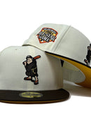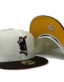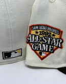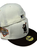 Presenting an exclusive custom New Era baseball cap only from Sports World. 59Fifty high crown cap. it features an all off color cap with brown visor. front logo in brown and seashell. baseball bat in orange. 1992 all-star game side patch on right mid panel. tonal new era flag on left mid panel. Flat MLB batter man logo in the back. yellow under visor. white sweat band. 100 percent polyester. imported from China.