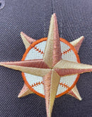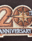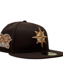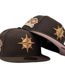 Mark two decades of Mariners pride with this striking Seattle Mariners 20th Anniversary Deep Brown Fitted Hat. Crafted with precision and sophistication, this cap merges vintage vibes with modern aesthetics, making it a versatile addition to any fan's collection. The dark brown colorway sets a refined backdrop, accented by the metallic copper, toast, and eggshell Mariners logo that adds a unique gleam to the front. A pink undervisor provides a playful yet stylish pop, contrasting perfectly with the deep tones, while a clean white top button adds a final touch of class. This hat is a superb way to commemorate the teamβs legacy with an accessory that complements both casual and street-style looks.