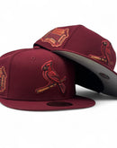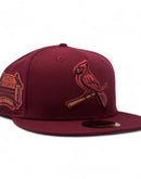 Introducing a unique custom St. Louis Cardinals Final Season gray brim new era fitted hat from Sports World. The 59Fifty high crown fitted hat is designed with a sleek all-burgundy color cap that provides a bold contrast to the classic design.