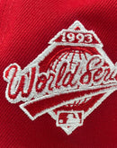 Celebrate one of baseball’s most memorable moments with this meticulously crafted Toronto Blue Jays 1993 World Series red color Fitted Hat. Designed with subtle yet striking red and white in the front logo. A flat MLB logo on the back brings authenticity, while the bold gray under visor adds a hint of flair, making it ideal for fans and collectors alike. Expertly crafted with top-tier materials, this cap combines comfort, quality, and style in one perfect package.
