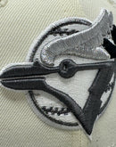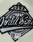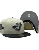 Introducing a unique custom Toronto Blue Jays 1993 World Series gray brim New Era fitted hat from Sports World. The 59Fifty high crown fitted hat is designed with a sleek all-stone color cap with a dark gray visor that provides a bold contrast to the classic design that matches the new Jordan 5 SE.